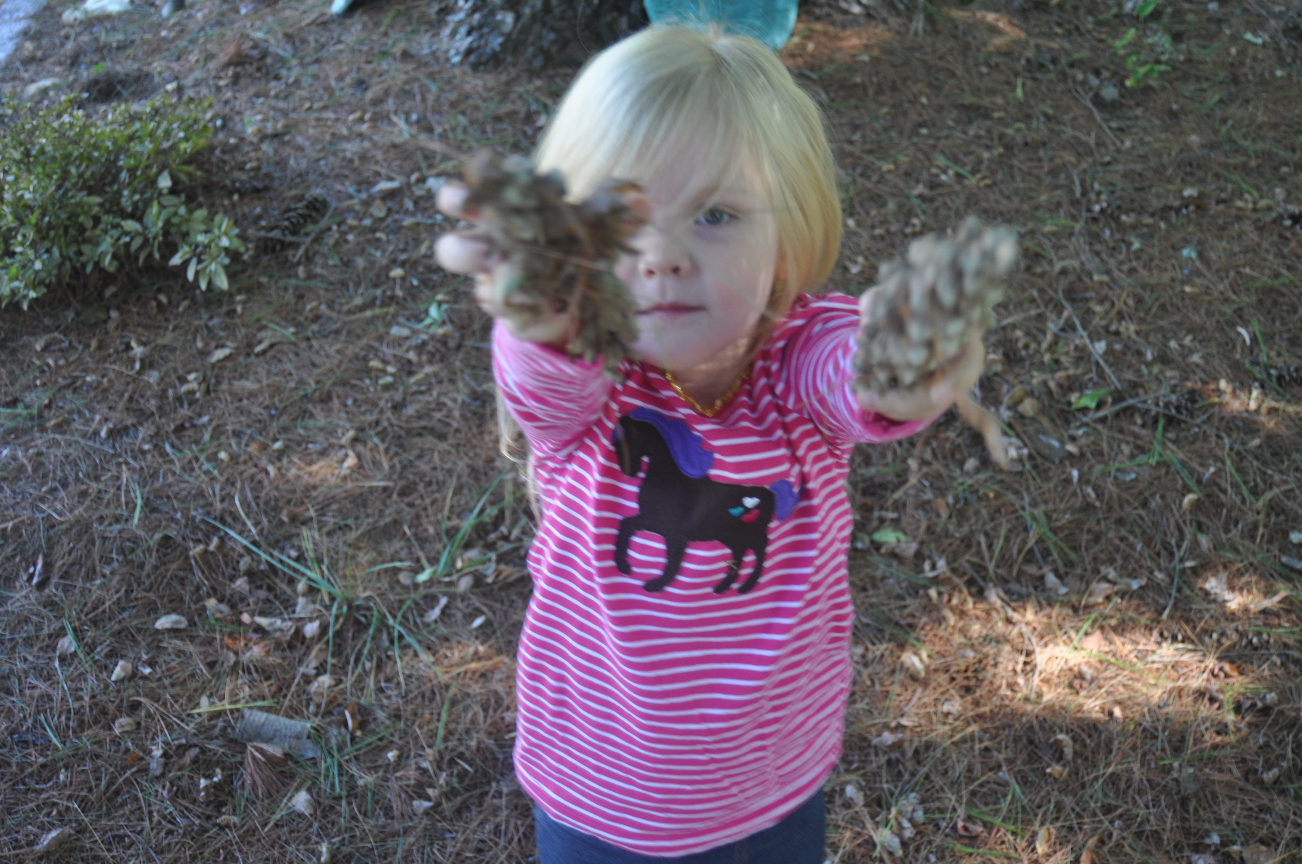 Now that I'm grown and a Mommy, my perspectives have changed. When we come to NanaPop's my girls can PLAY. They can just play. There aren't cars to watch out for, roads they aren't allowed to use in play, dogs that aren't ours, neighbor's to consider, or toys to chase down from other yards. I sit on my parents deck watching my children run, squeal, go on adventures, collect treasures, and make their own way.They can play without me right on top of them. They leave their Tonka trucks in the driveway overnight without a second thought.